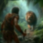 Church and street scene, as well as man and lion scene images designed with Microsoft Designer